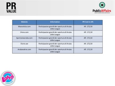 Website Information PR Cost in Afl.