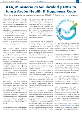 di cubri tur punto di contacto den e cadena un seyo p’e compania p’asina e ora por Pues e Aruba Health and Happiness Code