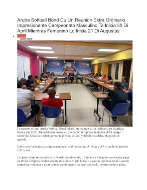 Diaranzon ultimo Aruba Softball Bond tabatin su reunion extra ordinario pa planifica