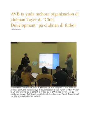 Arubaanse Voetbal Bond (AVB) a desaroya un plan integral, “Grow Football