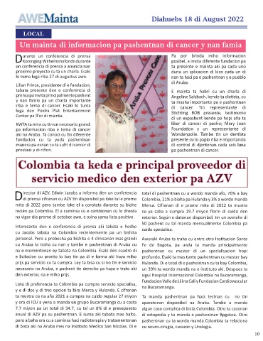 na e momentonan ey tabata na Colombia. Esaki den cuadro di pashentnan cu mester di un specialisacion hopi