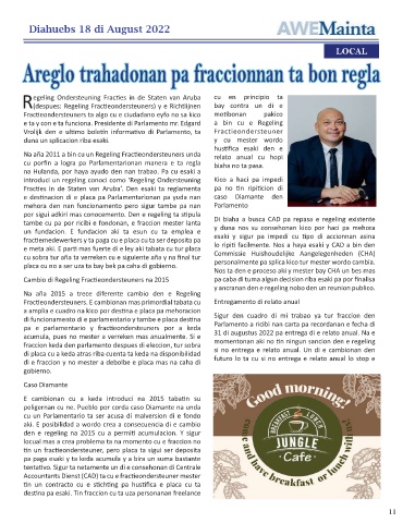 Fracties in de Staten van Aruba’. Den esaki ta reglamenta pa no tin ripiticion di