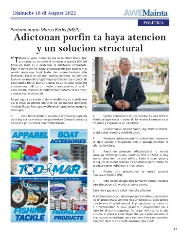 Esaki tabata reacción di Parlamentario Marco Berlis riba e
