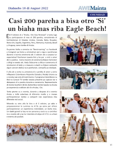 di 4 edicion di e “Aruba, I Do Vow Renewal” a tuma luga
