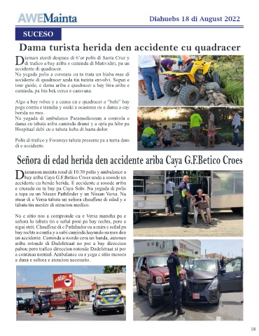 Señora di edad herida den accidente ariba Caya G.F.Betico Croes