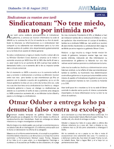 Esaki ta relaciona cu informacionnan cu e sindicatonan kier tambe na e sindicato SINBA pa nan asisti na e reunion