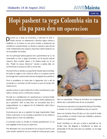 aseguradonan cu a regresa for di Colombia caba riba e E ta encera cu prome cu un pashent Sali pa Colombia,