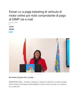 ORANJESTAD (AAN) – Mirando e criticanan cu tabata tin relaciona cu e asunto di pago