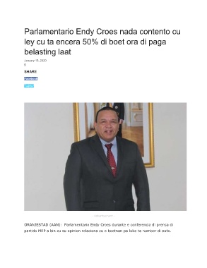 ORANJESTAD (AAN): Parlamentario Endy Croes durante e conferencia di prensa di