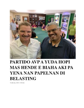 PARTIDO AVP A YUDA HOPI MAS HENDE E BIAHA AKI PA YENA NAN PAPELNAN DI BELASTING 15 January, 2020, 11:25 am 334