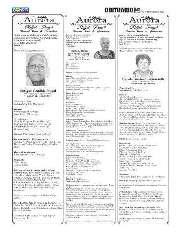den seno familiar. Restonan mortal lo ta reposa for di 1or atardi den Misa. Despues lo November 2025 di 9or pa 11or di mainta na Aurora