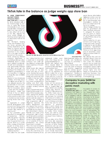 of TikTok, which has about In addition, Hall argued protect confidential busi- Company to pay $60M for