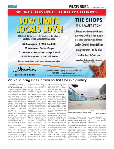 Rio's League of Samba Brazil's first confirmed coro- display. Janeiro, Brazil, Monday, Sept. 21, 2020.