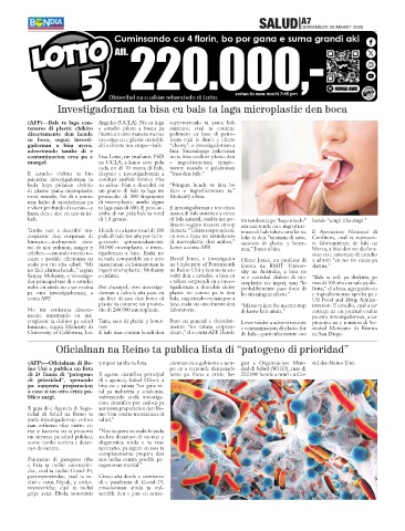 tro di nos pulmon, sanger y 30.000 microplastic, e inves- Lowe a conta AFP. nan,” Jones a bisa. Merca, a bisa den un declara-