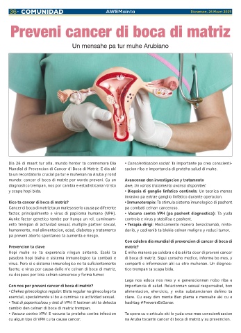 cu algun tipo di VPH cu ta causa cancer. na Aruba tocante cancer di boca di matriz y su prevencion.