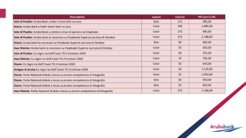 Diario: Aruba Bank a habri siman bisti na cora Color 100 1.885,00