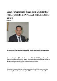 Segun Parlamentario Rocco Tjon: GOBIERNO