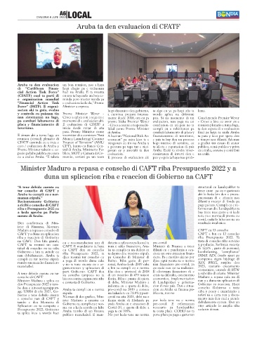 CAFT ta resumi un can- CAFT. E mandatario ta haya trata e saldo financiero, Aru- Minister di Finansa a trece y producto, Serlimar, recorte