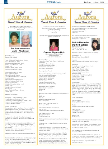atardi. Despues lo sali pa Santana Catolico na Noord. 14 di juni 2021 na Aurora Funeral Home di 2’or pa 4’or di