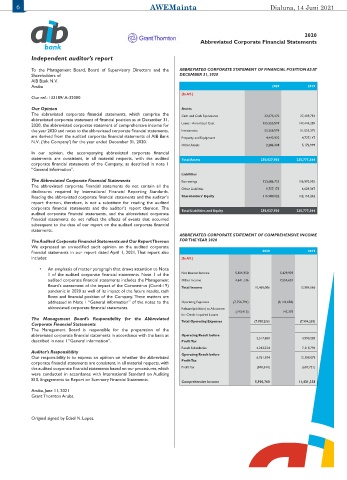 The Audited Corporate Financial Statements and Our Report Thereon FOR THE YEAR 2020