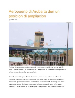 Endy Croes di Triple A ta splica kico ta e ampliacion di e edificio di aeropuerto cu