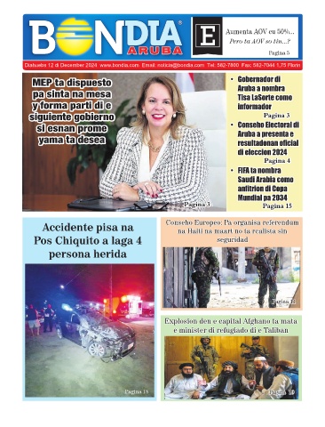 Diahuebs 12 di December 2024 www.bondia.com Email: noticia@bondia.com Tel: 582-7800 Fax: 582-7044 1,75 Florin