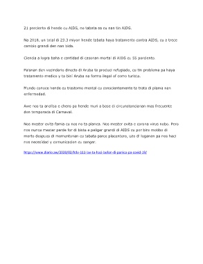 21 porciento di hende cu AIDS, no tabata sa cu nan tin AIDS.
