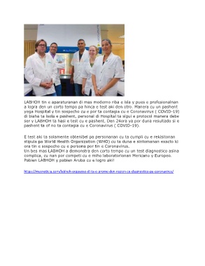 ser y LABHOH ta hasi e test cu e pashent. Den 24ora ya por duna resultado si e
