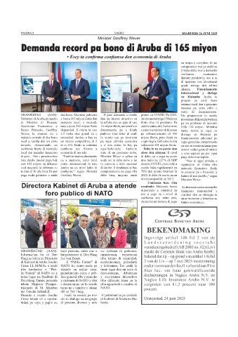 di pais. Den e proximo tres “Esaki ta mustra claramente Minister Wever a splica cu di debe, cu a yega su punto paga debe mas rapido.