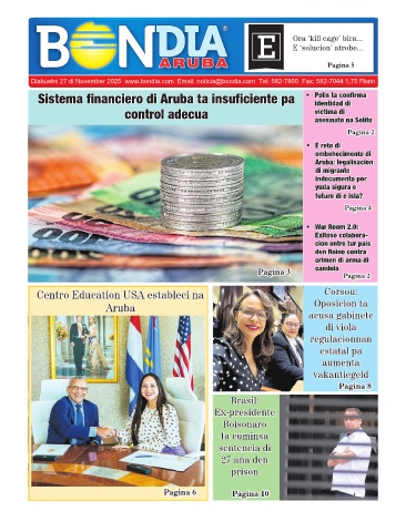 Diahuebs 27 di November 2025 www.bondia.com Email: noticia@bondia.com Tel: 582-7800 Fax: 582-7044 1,75 Florin