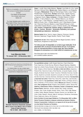 Casa: † Judith Glory Kelie-Maduro. Yiunan: Ivan Kelie Jr y Sra. Ivette
