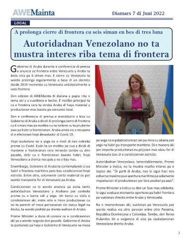 autoridadnan Venezolano y Arubano por controla lo sigui evalua e momento oportuno pa habri frontera