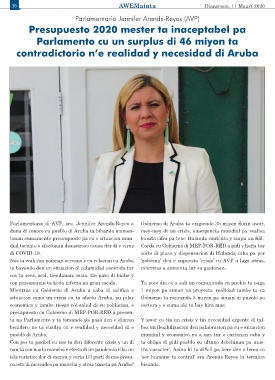 Parlamentario di AVP, sra. Jennifer Arends-Reyes a Gobierno di Aruba ta exigiendo 35 miyon florin awor,