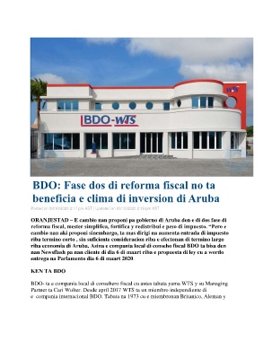 BDO- ta e compania local di consehero fiscal cu antes tabata yama WTS y su Managing