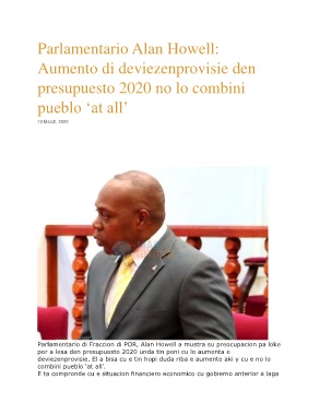 Parlamentario di Fraccion di POR, Alan Howell a mustra su preocupacion pa loke