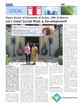Open House Day, but last students at SABA, a senior three opportunities to ex- level of policy and advo- social help workers to help