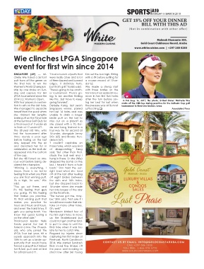SINGAPORE (AP) — Mi- "I had a bunch of putts that Kim set the bar high, flirting