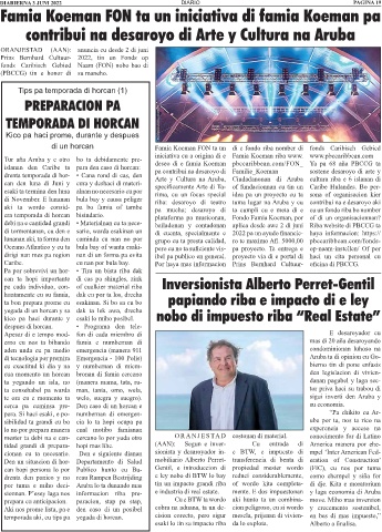 drenta temporada di hor- • Cana rond di cas, den Arte y Cultura na Aruba, Ciudadanonan di Aruba cultura riba e 6 islanan di