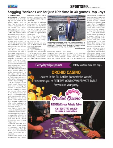 NEW YORK (AP) — Andrew in the first. and DJ LeMahieu Saturday night and was ex-