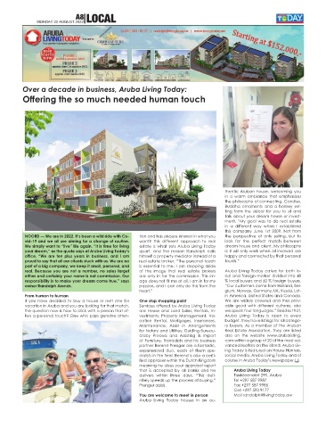 fers a personal touch? One who pays genuine atten- vestments, Property Management, Va- Aruba Living Today is open to every