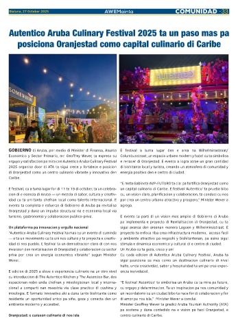“Autentico Aruba Culinary Festival ta mas cu un evento di cuminda proyecto ta enfoca riba crea infrastructura moderno, acceso facil