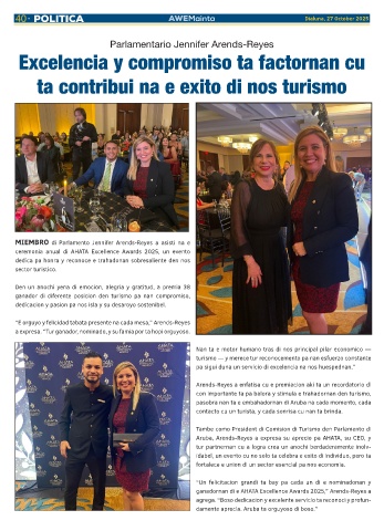ganadornan di e AHATA Excellence Awards 2025,” Arends-Reyes a
