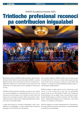 E prestigioso evento di AHATA Excellence Awards, organiza anual- Den e proximo simannan, AHATA lo resalta cada honorado atraves