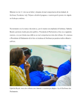 Ophelia Beyde sinta den tribuna awe durante e reunion pa adapta e ley di Serlimar den