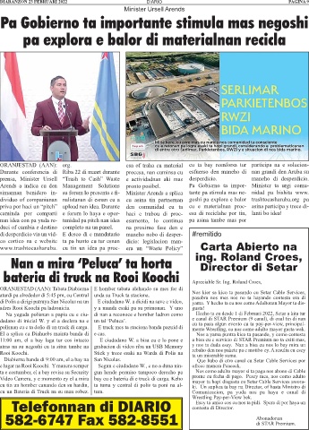 Arends a indica cu den Management Solutions pronto posibel. Pa Gobierno ta impor- Minister ta urgi comu-