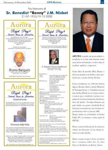 Diamars 29 di december 2020 pa 7’or di anochi Benny sosega na paz y forsa na famia