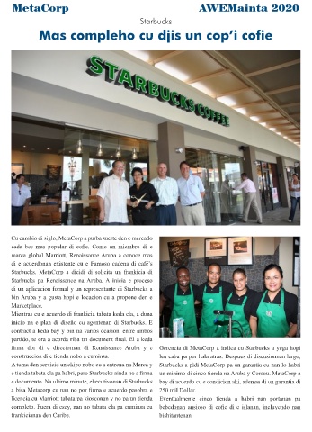 e tienda tabata cla pa habri, pero Starbucks ainda no a firma un minimo di cinco tienda na Aruba y Corsou. MetaCorp a
