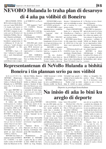 Volleyball Bond), a risibí Durante e siman a hasi BOVOBO i NEVOBO Beach Volleyball. día 15 di desèmber, esaki