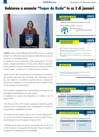 Gobierno a anuncia “Toque de Keda” te cu 3 di januari