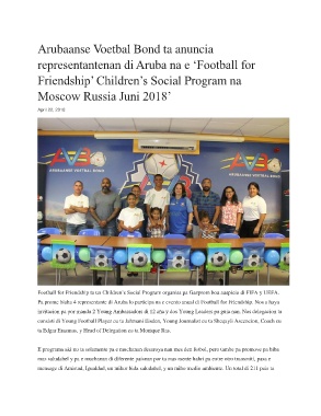 Pa prome biaha 4 representante di Aruba lo participa na e evento anual di Football for Friendship. Nos a haya